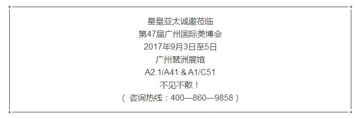 美博會(huì)的一天如此之快,很多顧客或許還沒(méi)有盡興,又或許還沒(méi)有來(lái)得及光顧星皇亞太,沒(méi)有關(guān)系,還有時(shí)間,我們繼續(xù)約起來(lái)吧!
