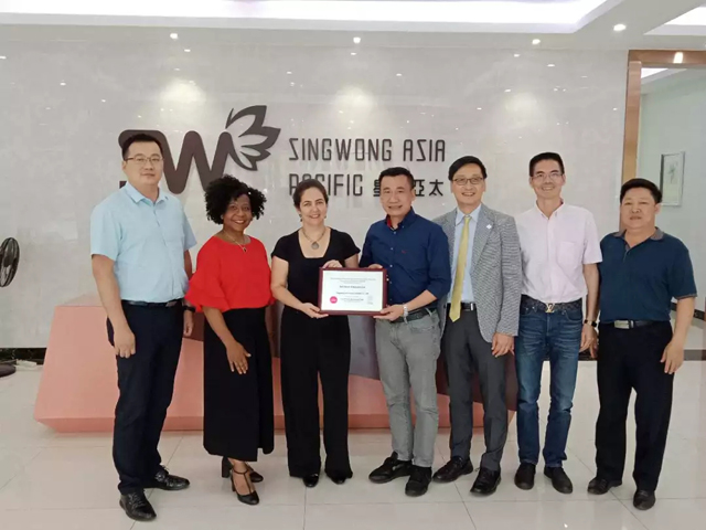 在座談中許賢堤董事長(zhǎng)向Vania Leite 教授一行介紹了我司發(fā)展歷程,相互交流化妝品研發(fā)技術(shù),Vania Leite 教授向我司頒發(fā)“中國(guó)化妝品化學(xué)師協(xié)會(huì)贊助商”證書(shū)。